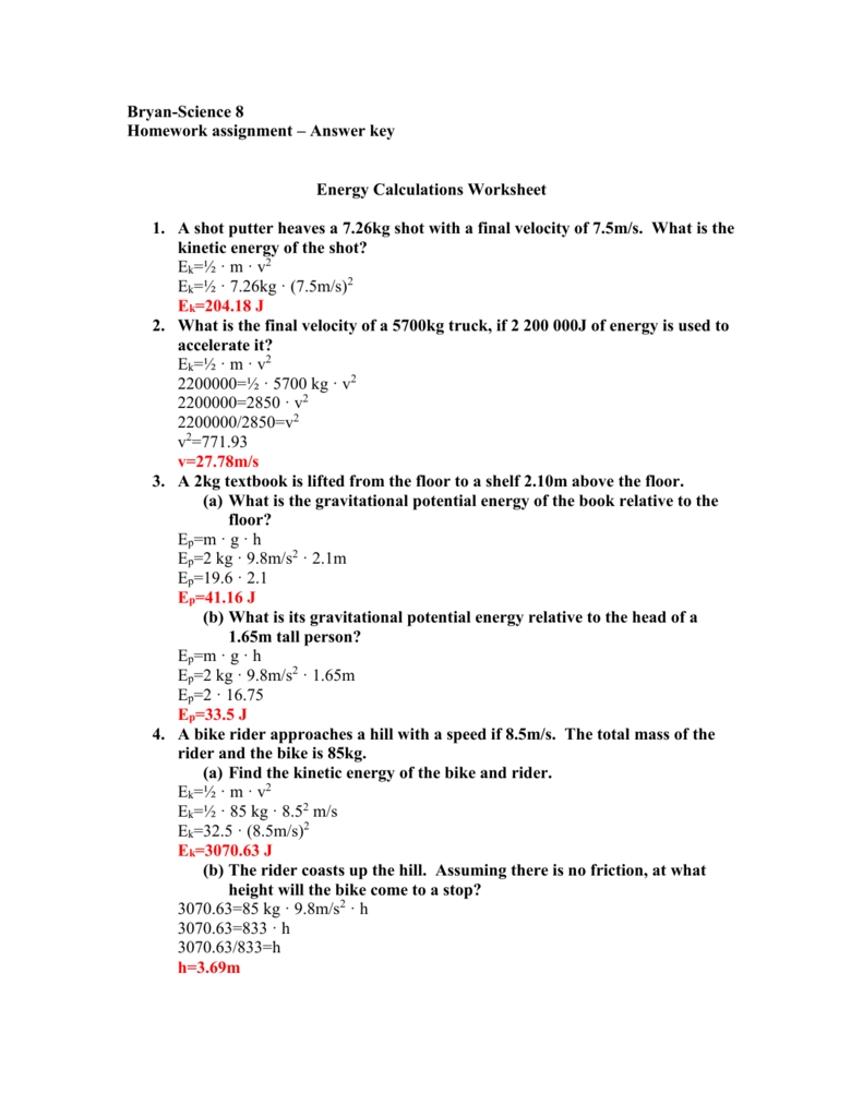 5 photos of the "Conservation Of Energy Worksheet Answers"