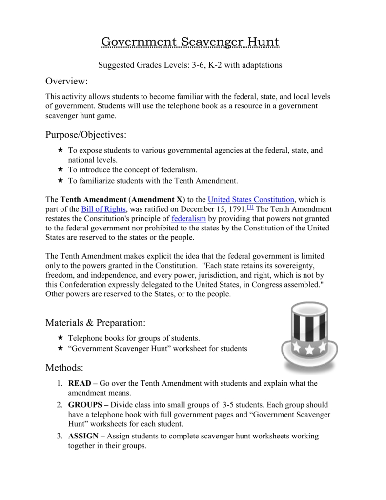 Scavenger Hunt Worksheet: Understanding the U.S. Constitution