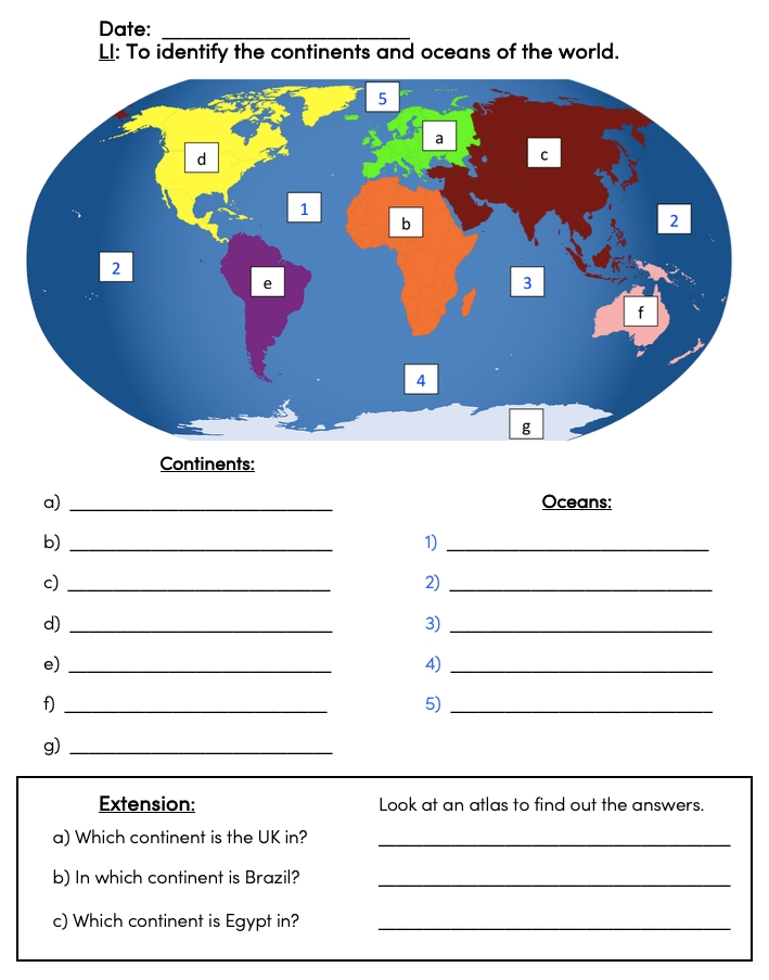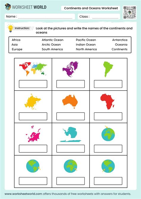 Each worksheet also includes a map or chart. This allows kids to visualize the different continents and oceans and see how they fit together. It also helps them to understand the size of different continents and oceans, and how they are connected to each other. This helps kids to develop a better understanding of the world around them.