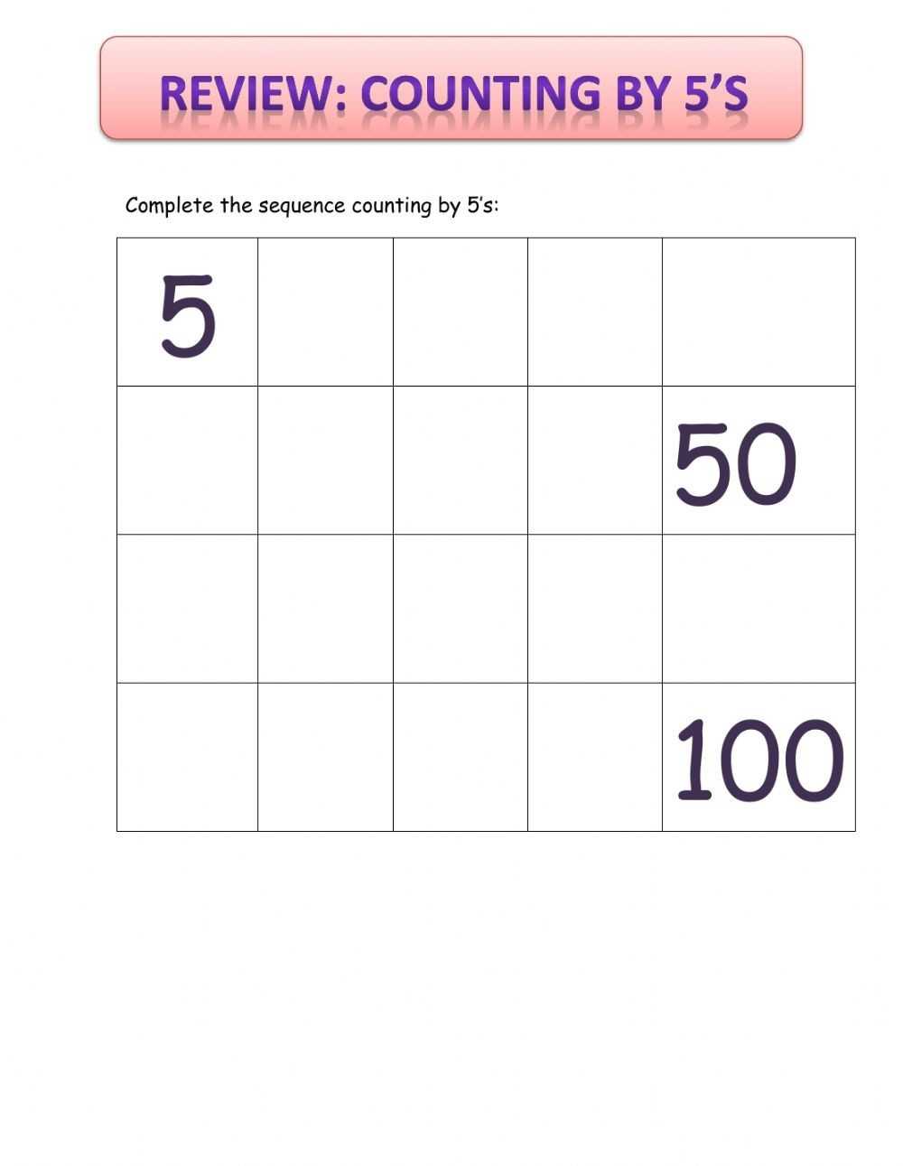In addition to helping students practice counting by 5s, the worksheets also provide students with the opportunity to practice recognizing the numbers that are counted by 5s. This helps to ensure that students understand the pattern and are able to recall the numbers when counting.