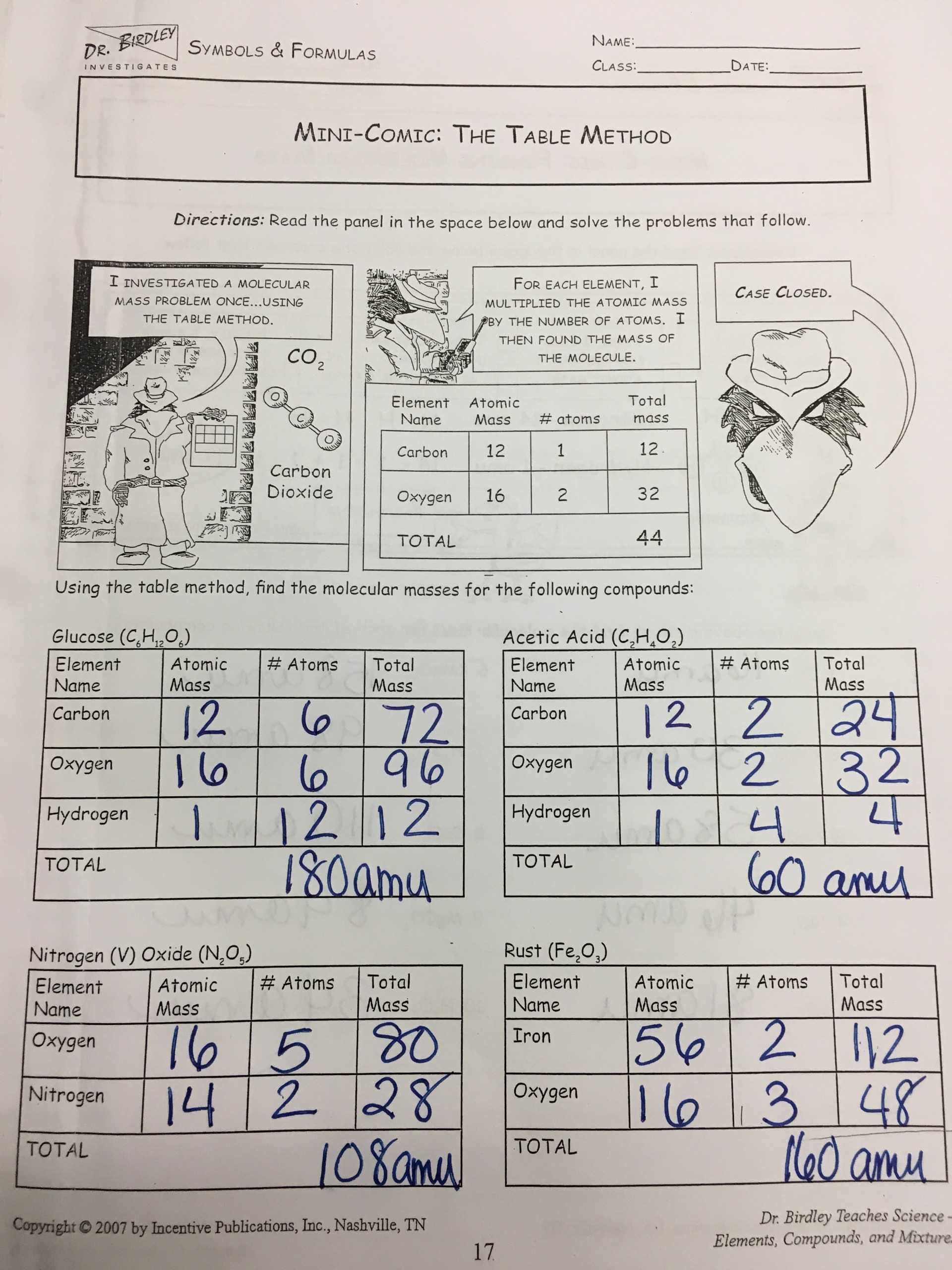 Overall, this worksheet offers an effective way to assess the accuracy of counting atoms. It provides students with a visual representation of the molecules and their corresponding formulas, along with a table to compare the expected and actual atom counts. This allows for an objective evaluation of the students’ understanding of counting atoms and helps them to develop the skills necessary to complete more complex calculations.