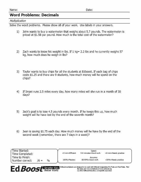 By following these tips, you can ensure that you complete your decimal word problem worksheets without making any mistakes.