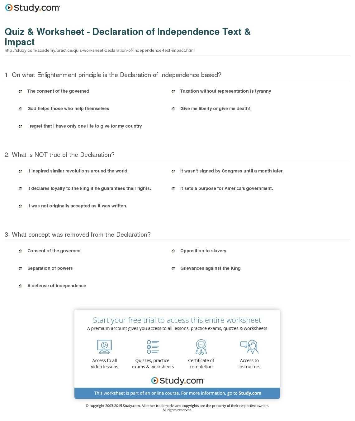 Investigating the Impact of the Declaration of Independence Worksheet Answers on Modern Society