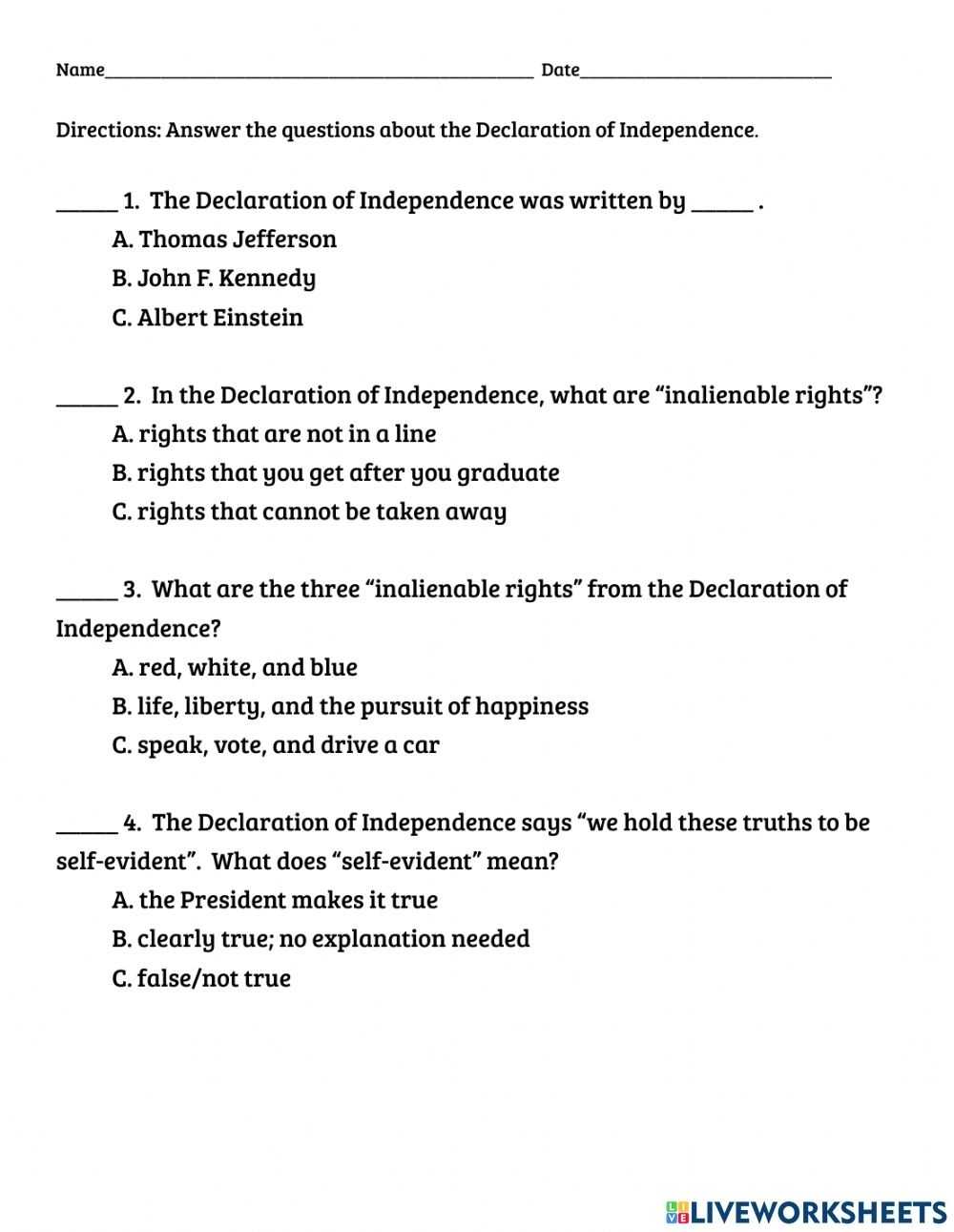 The Declaration of Independence is one of the most important documents in American history. It declared the United States of America as a free and independent nation and declared the thirteen colonies’ right to revolt against the tyranny of the British government. This document has had a significant impact on the development of the United States and its place in the world today. This guide provides a step-by-step worksheet for analyzing the significance of the Declaration of Independence.