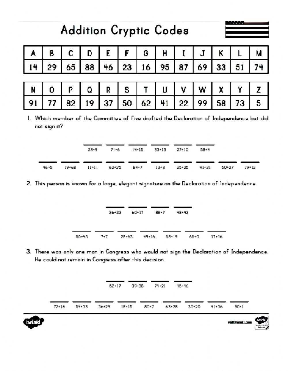 Declaration Of Independence Code Breaker Worksheet Regarding Declaration Of Independence Worksheet