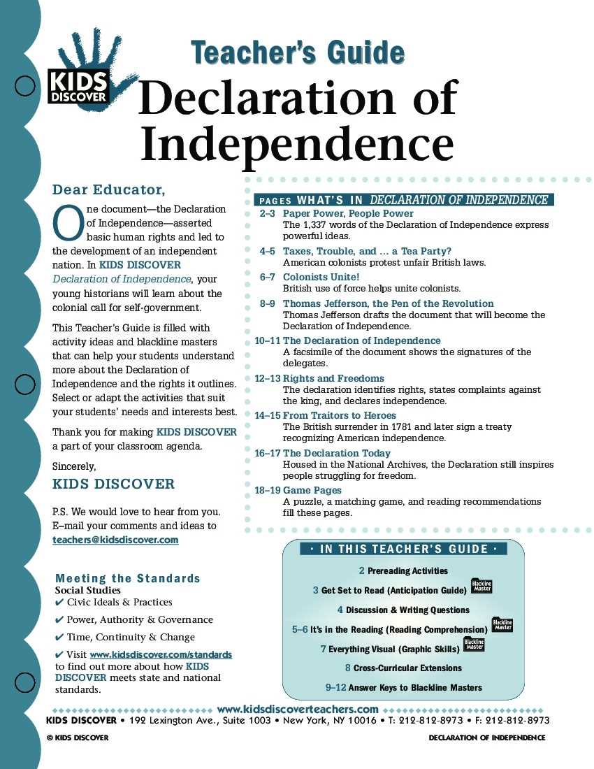 The Declaration - Kids Discover With Regard To Declaration Of Independence Worksheet
