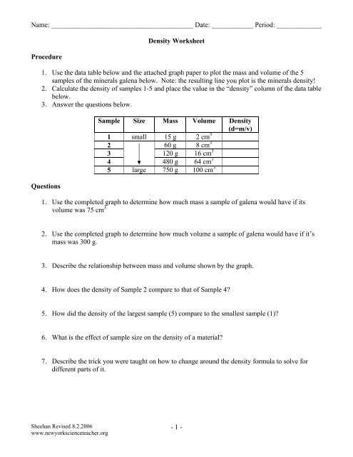 Density Calculations Worksheet 1 Answers - Worksheet List Within Density Calculations Worksheet 1