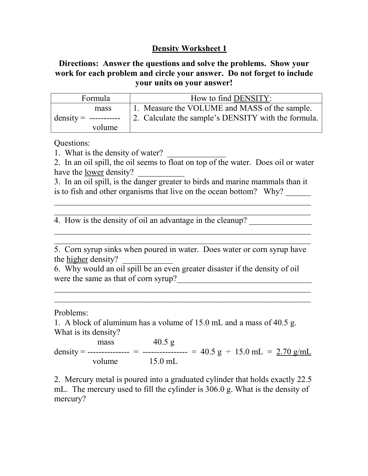 Finally, the worksheet should be structured to allow students to practice the material in a variety of ways. This may include providing multiple choice, true/false, or fill-in-the-blank questions. It can also be helpful to include open-ended questions that require students to explain their calculations or explain the principles of density.
