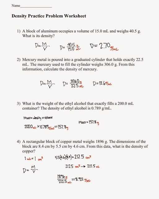 A density problems worksheet with answers can provide students with the opportunity to practice and apply their knowledge of density. By providing students with a series of problems to solve, they can develop their understanding of the concept and build their confidence in the subject. Furthermore, by providing the answers for each problem, students can quickly and accurately assess their level of understanding and adjust their approaches accordingly.