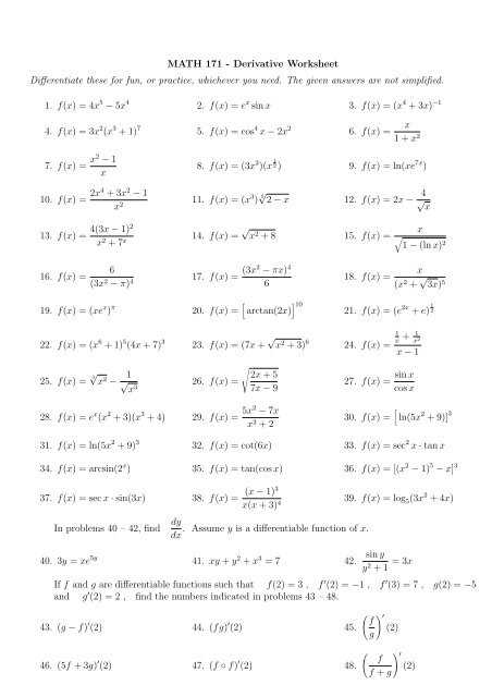 Next, it is important to organize the worksheet. The worksheet should have a section for the original equation and a section for the derivative. It is also important to include any formulas needed to calculate the derivative.