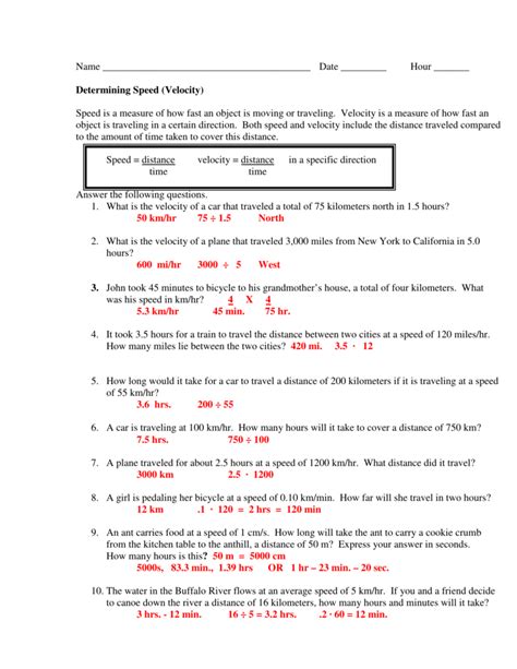 Exploring the Benefits of Using a Determining Speed Velocity Worksheet Answers in the Classroom