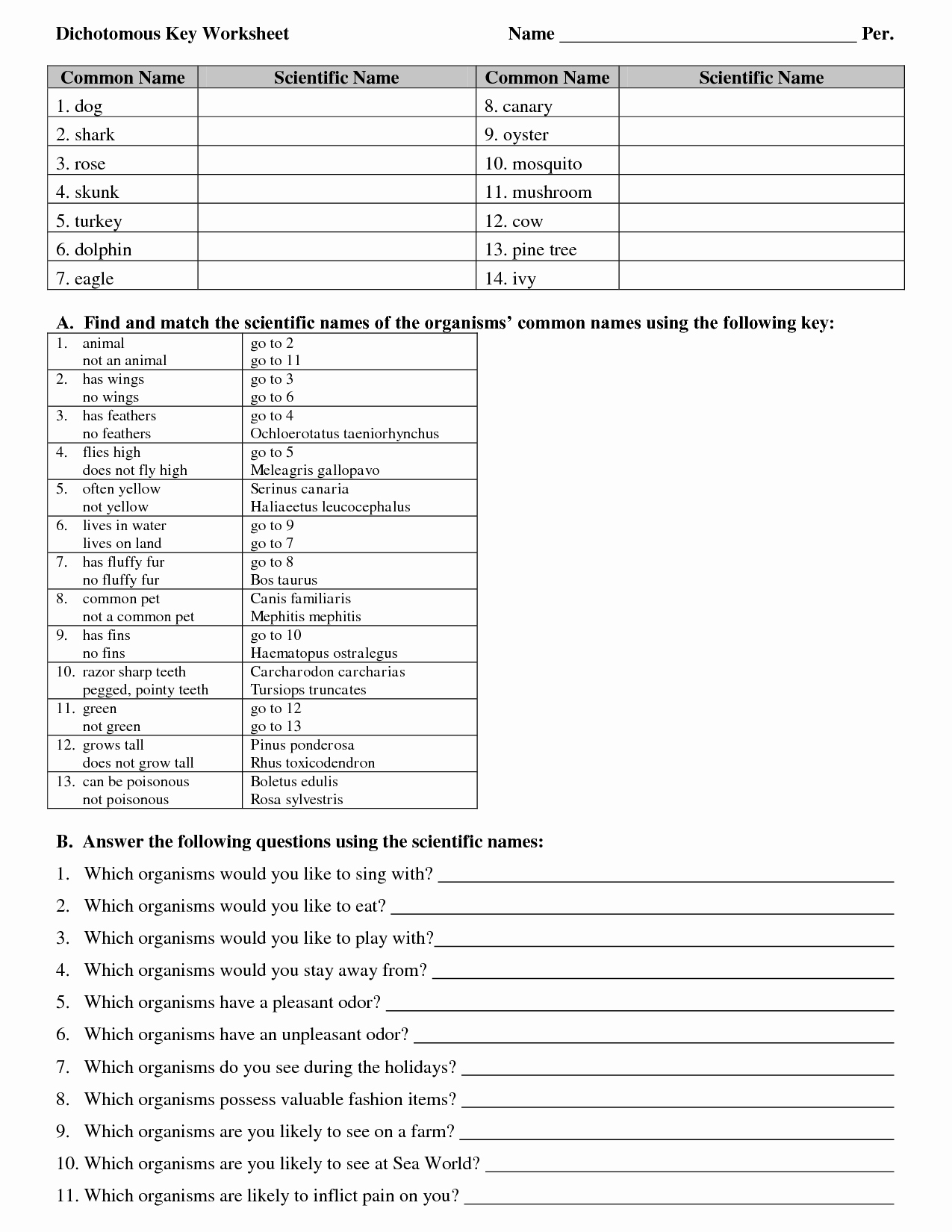 Finally, the worksheet can be used to reinforce the knowledge and skills that students have learned in class. As students answer the questions correctly, their confidence in their ability to classify and identify organisms will grow. By working through the worksheet, students can review the concepts they have learned in class, and practice the skills they need to accurately identify organisms.