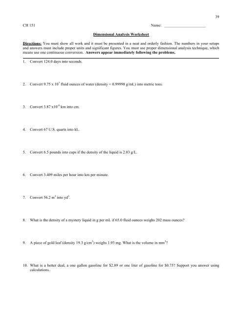 How to Use a Dimensional Analysis Worksheet in Chemistry