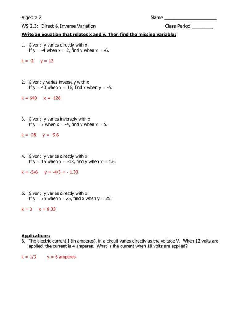 Direct And Inverse Variation Worksheet With Answers Yooob — Db Excel Pertaining To Direct Variation Worksheet With Answers