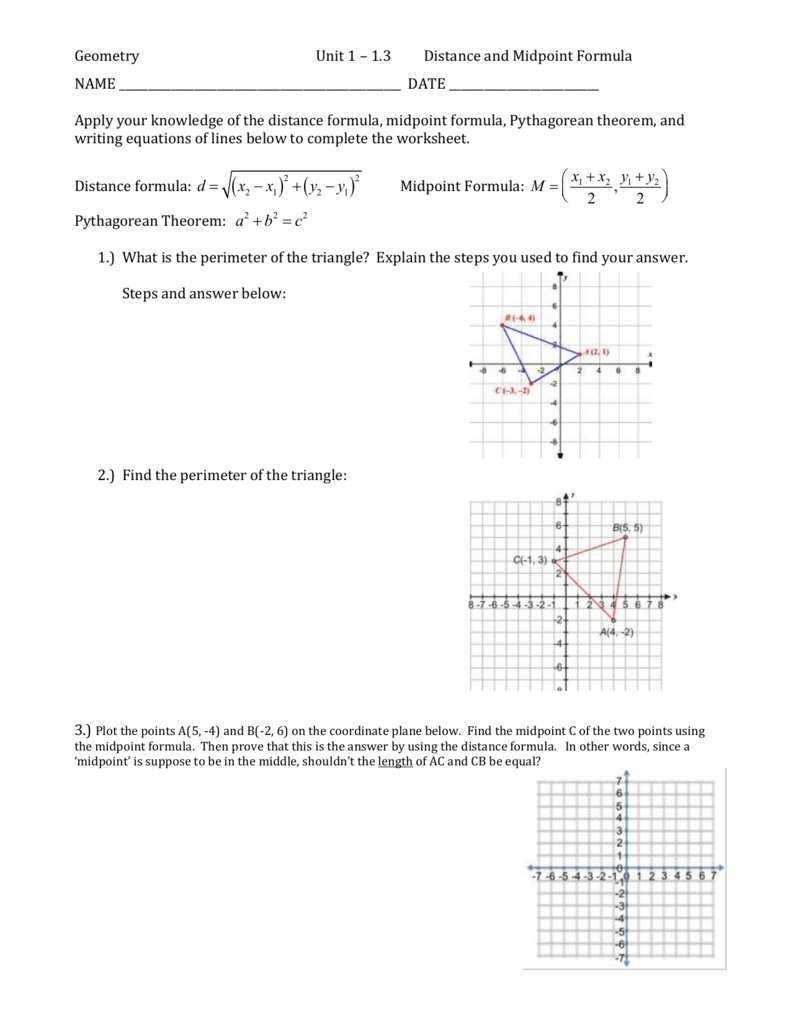 Distance and midpoint worksheets also provide students with the opportunity to practice the application of the formulas for calculating distances and midpoints. By completing the worksheets, students can practice the application of the formulas in a variety of situations, such as determining the midpoint of two points on a line or circle, as well as the distance between two points on a line or circle. Through the practice of using the formulas in these situations, students can develop their ability to solve geometry problems in a variety of settings.