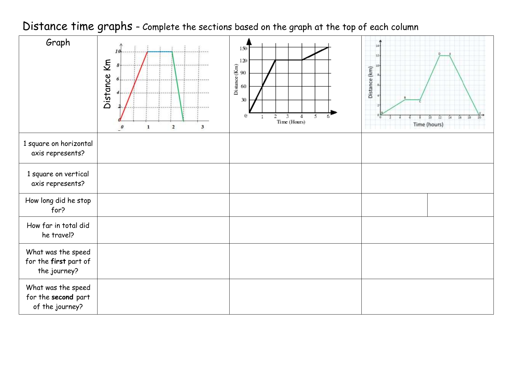 Distance Time Graph Worksheet