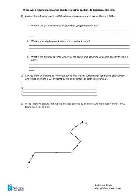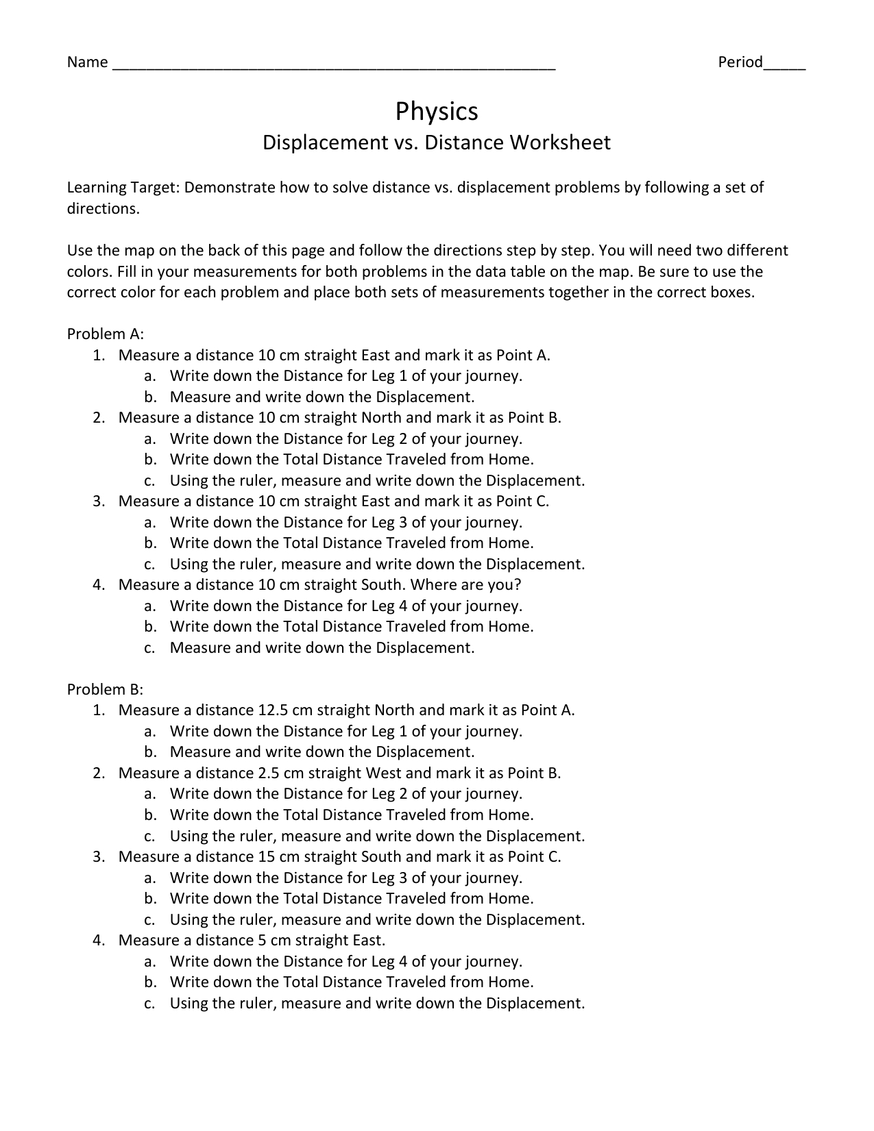 Finally, the worksheet should ask students to complete a few examples of distance and displacement. This will help them understand the difference between the two better.