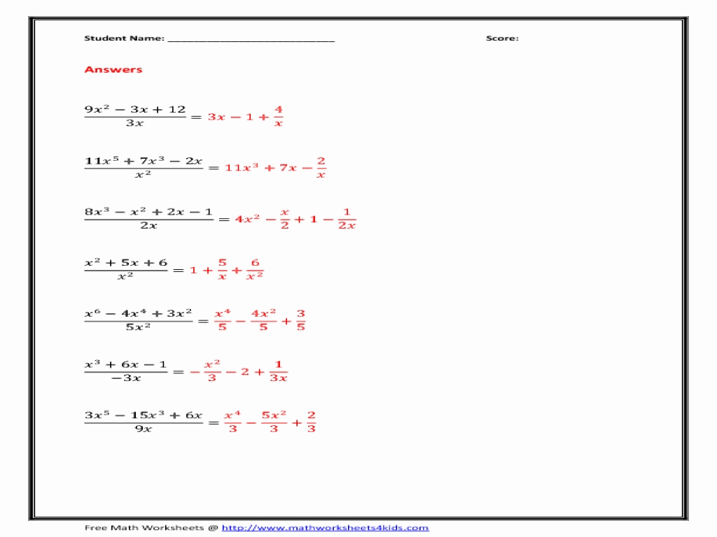 5 photos of the "Dividing Polynomials Worksheet Answers"