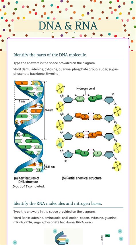 The DNA and RNA worksheet is a great way to learn about the structure and function of these two important molecules. Students can learn about the differences between the two, explore their roles in the body and experiment with different combinations of nucleotides to create a variety of proteins. With this worksheet, students can become more knowledgeable about the building blocks of life and apply their knowledge to everyday activities.