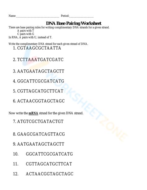 Firstly, it is important to provide clear and concise instructions on the worksheet. The instructions should explain the task clearly and provide step-by-step guidance on how to complete the worksheet. Furthermore, it should be made clear to students that they are expected to use the information provided to identify the correct base pairings.