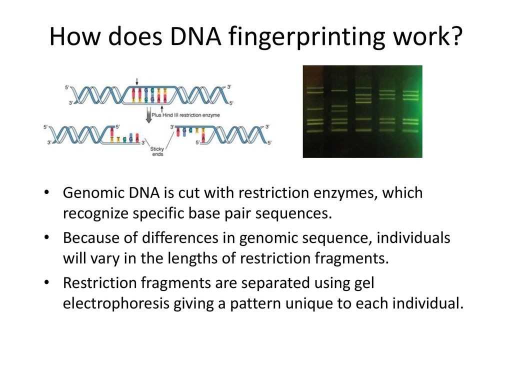 DNA fingerprinting works by extracting the DNA from a sample of cells from a person or other living organism. The sample is then broken down into its component parts, which are analyzed and compared to a reference point. A unique pattern is created from the comparison, known as a DNA fingerprint. This pattern is then used to identify a person or other living organism.