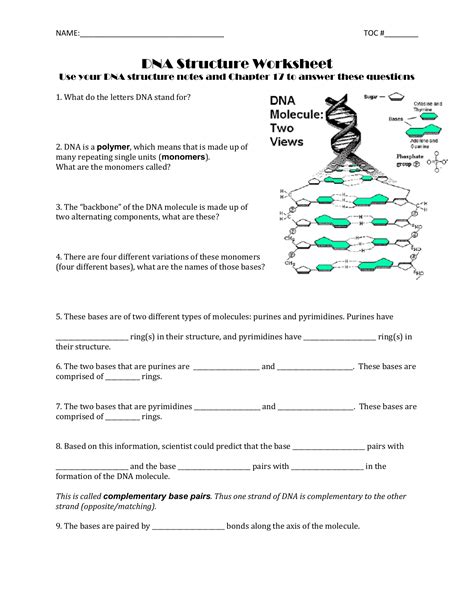 4. Read through the DNA replication worksheet and answer the questions. The worksheet should provide you with all the information you need to understand the process of DNA replication. Make sure to answer all questions accurately and thoroughly.