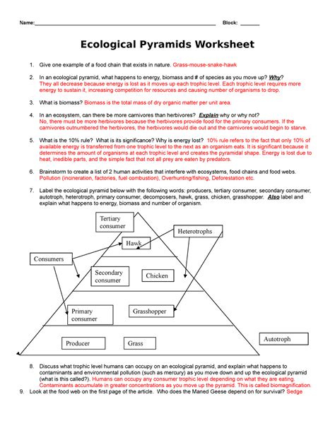 Exploring the Role of Ecological Pyramids Worksheet Answer Key in Ecosystem Management