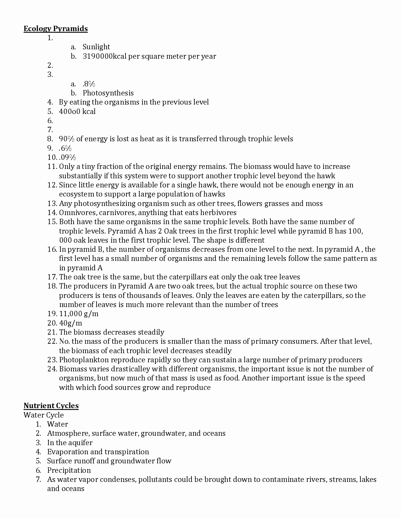 The Ecological Pyramids worksheet is an essential component of sustainable development strategies. This worksheet provides valuable information on the interconnectivity of the natural environment and how this interconnectivity affects the sustainability of the environment. By understanding the different components of an ecosystem, such as energy, biogeochemical cycles, food webs, and nutrient cycles, it is possible to develop strategies that will encourage the sustainability of the environment.