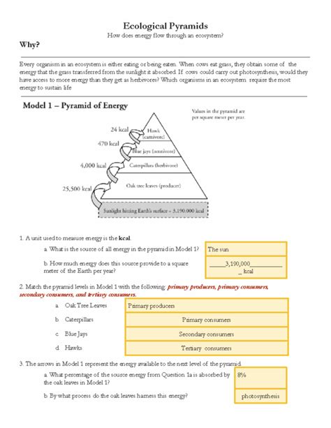 Exploring the Different Components of Ecological Pyramids Worksheet Answers