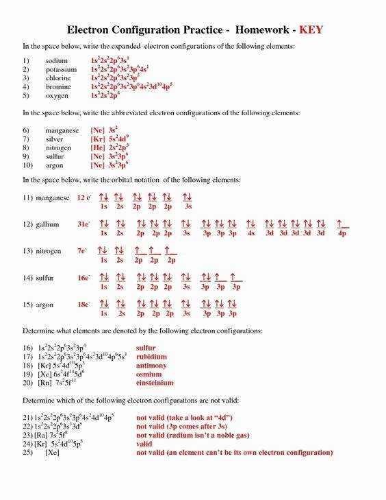 Finally, it is important to understand how the electrons interact. Electrons have a tendency to pair up in orbitals, and the outermost electrons are known as valence electrons. These electrons are responsible for the chemical properties of the atom. When interpreting electron configuration worksheet answers, it is important to look for patterns in the arrangement of electrons that can be used to predict the behavior of the atom.