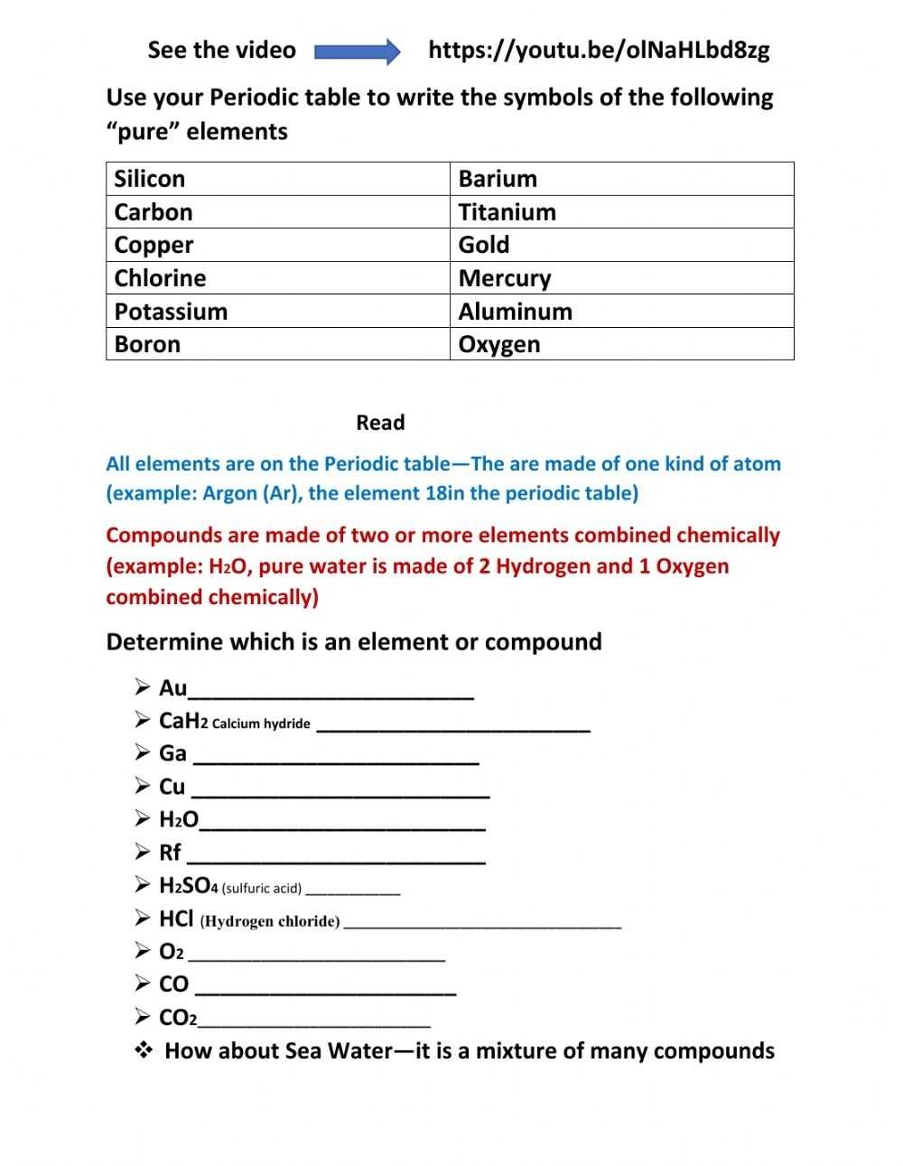 Elements & Compounds Worksheet With Regard To Elements Compounds And Mixtures Worksheet