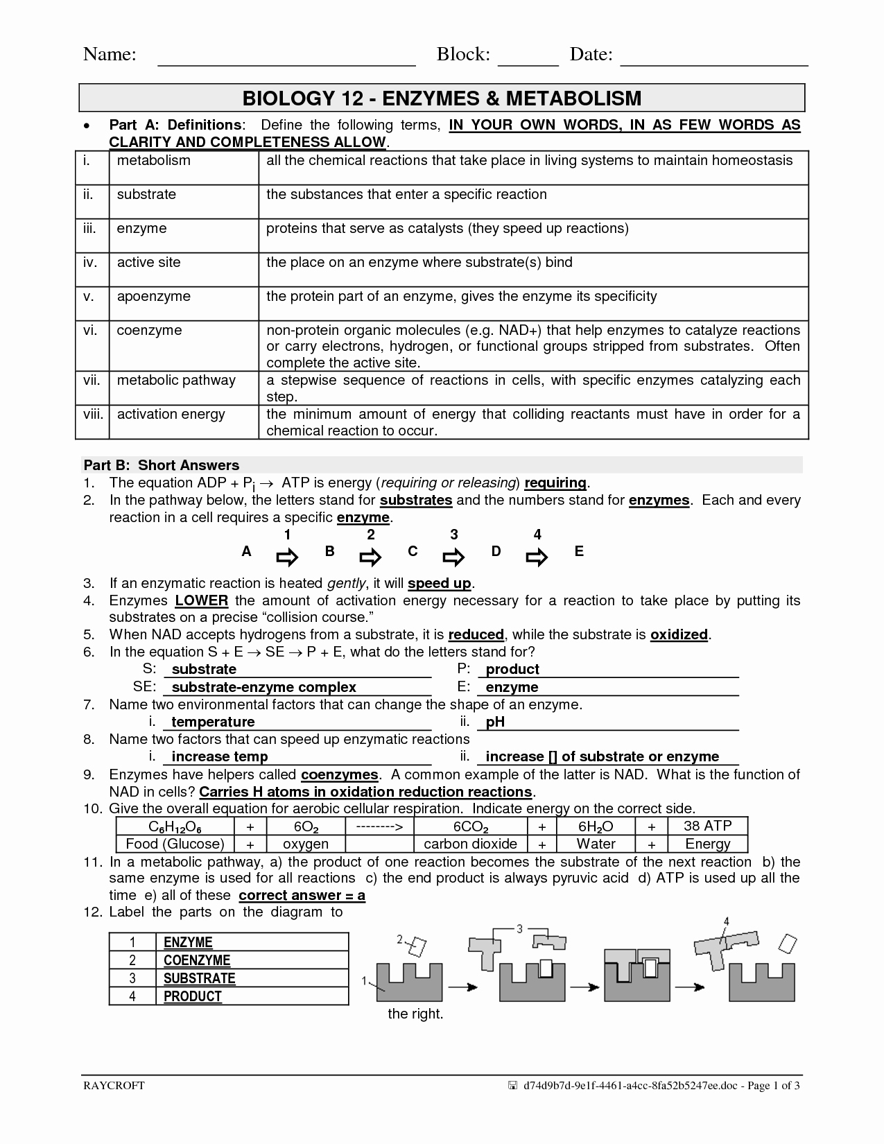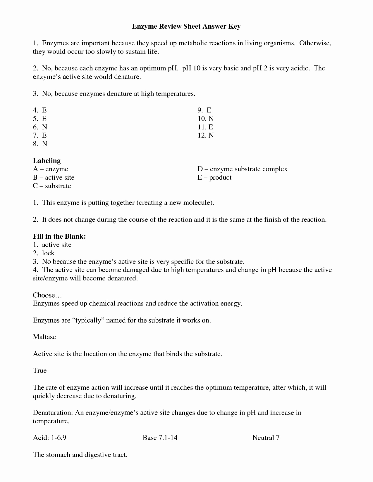 Related posts of "Enzyme Reactions Worksheet Answer Key"