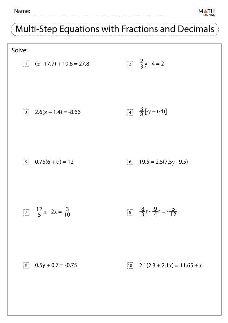 Multi Step Equations Worksheets - Math Monks Pertaining To Equations With Fractions Worksheet