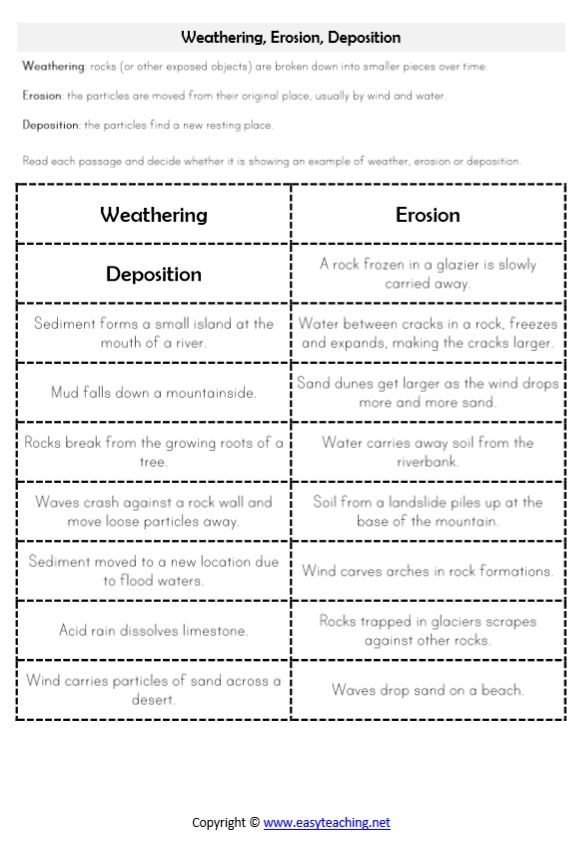 By completing this worksheet, students will gain an understanding of how erosion and deposition work and how they interact to shape the environment. Additionally, they will be able to create a visual representation of the processes, which will help them better understand the concepts.