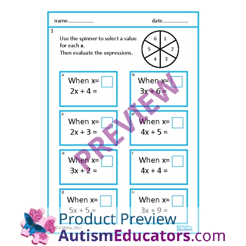First, it can be used to introduce the concept of evaluating algebraic expressions. This worksheet contains a variety of expressions with different levels of difficulty. It can provide a great starting point to allow students to gain a better understanding of how to evaluate an algebraic expression.