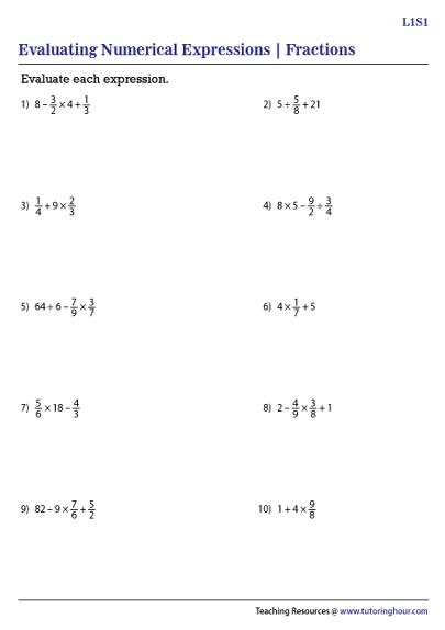 Evaluating Numerical Expressions With Fractions Worksheets In Evaluate The Expression Worksheet