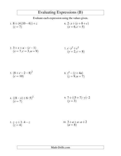 Evaluating variable expressions worksheets can help students develop their problem-solving skills as they work through the questions and become more familiar with the concepts. As students work through the worksheet, they are required to pay close attention to the order of operations, which is an important part of solving equations. This type of worksheet also allows students to practice their understanding of functions and how to solve equations. By providing students with an opportunity to practice and master their understanding of these concepts, it can help them to become more confident when it comes to tackling more difficult math problems.