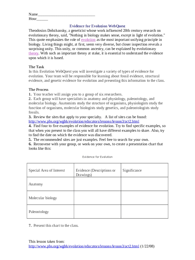 This worksheet guide provides a comprehensive overview of the complexity of evidence for evolution. It explains how to unpack and examine the wide variety of evidence that scientists use to support the theory of evolution. The guide begins with an overview of the types of evidence that are used to support the theory of evolution. It then explains how to use each type of evidence to make an argument for the theory. It also provides examples of how each type of evidence can be used in different ways.