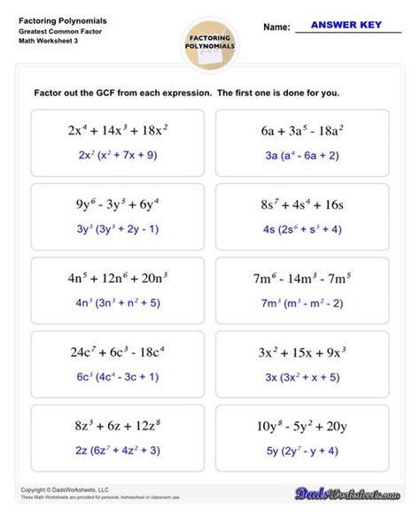 By following these strategies and utilizing GCD worksheets, you can begin to master the art of factoring polynomials. With practice and dedication, you will be able to become an expert in this mathematical skill.