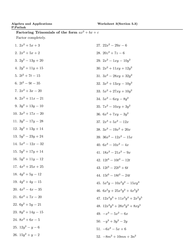 Factoring Ax2 Bx C Worksheet Answer Key - Fill Online, Printable For Factoring Trinomials Worksheet Answer Key