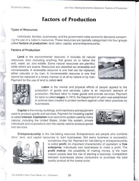 Worksheets that focus on the factors of production can also help students gain an appreciation for the various ways in which economic resources are allocated. Through worksheets, students can learn how economic resources are allocated between different economic actors, such as households and businesses. This understanding is essential for making sound economic decisions.