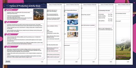 Finally, the worksheet can also serve as a platform for discussion and debate. By engaging in conversations about the various components of production and their implications, students can gain a greater understanding of economic principles. Through this dialogue, students can begin to understand how the different factors of production interact to create an economy that is both efficient and productive.