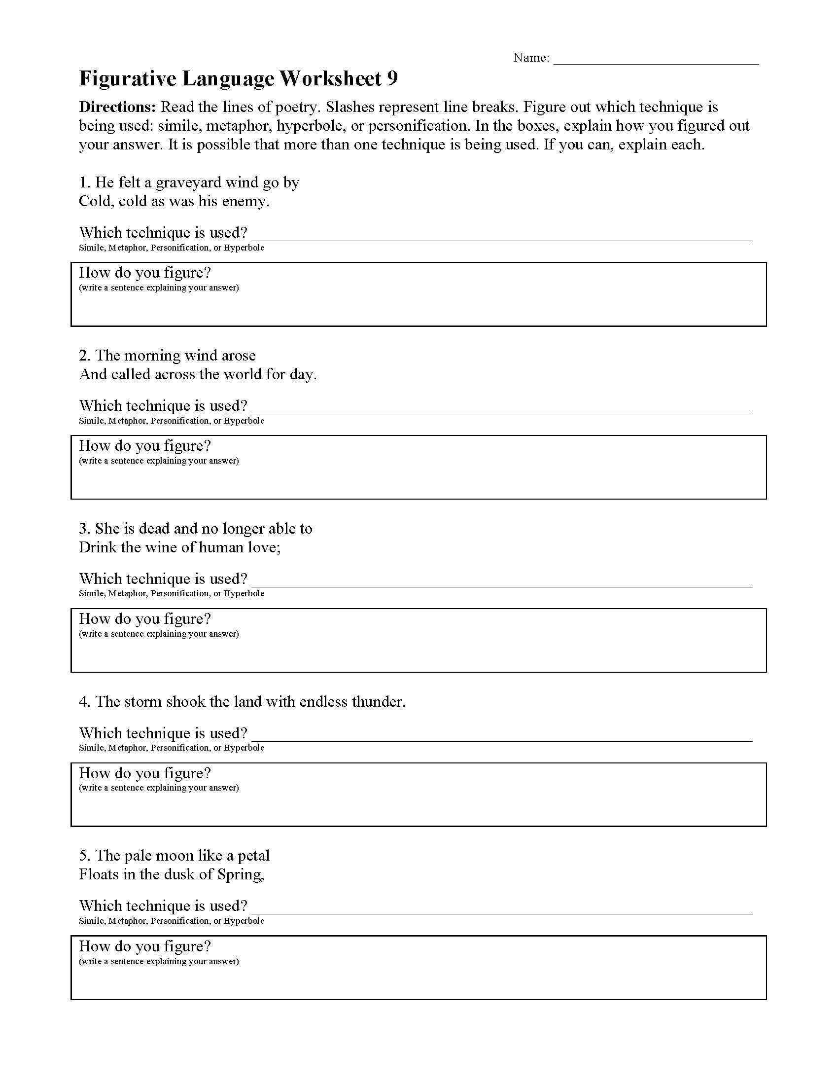 Harnessing the Power of Figurative Language Worksheet 2 Answers to Enhance Student Writing
