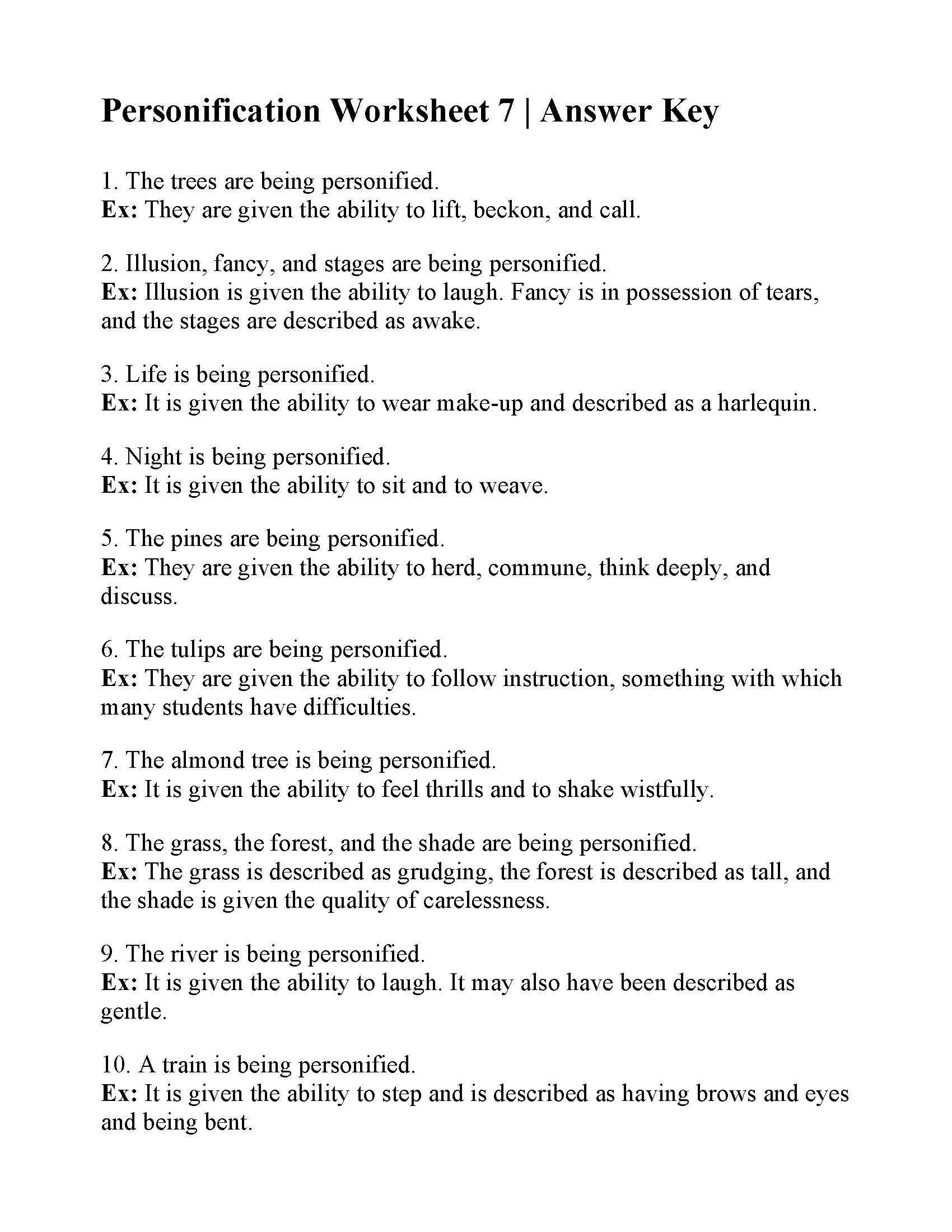 Overall, Figurative Language Worksheet 2 Answers provides an interesting and informative look at the many different types of figurative language. It allows students to gain a better understanding of these literary devices and how to use them in their own writing. It also emphasizes the importance of context when using figurative language in order to ensure that the intended meaning is communicated clearly. With this worksheet, students can become more comfortable with the different types of figurative language and use them to further enhance their writing.