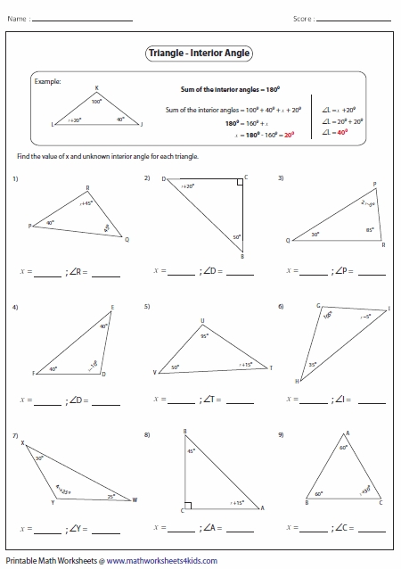 For elementary school students, worksheets should focus on the basics of finding the missing angle. Start by introducing the concept of the three angles of a triangle adding up to 180 degrees. Provide a simple example and then guide students through the steps of finding the missing angle. Begin with worksheets that have three angles given and the fourth angle missing. As students become more proficient, progress to worksheets that have two angles given and the third angle missing.