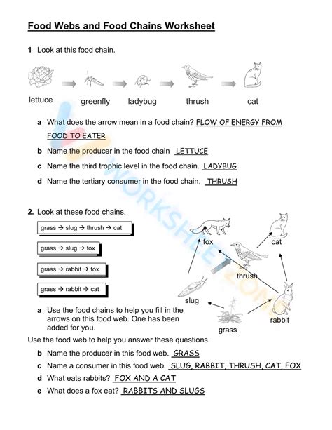 Understanding Food Chain Dynamics Through Food Web Worksheet Answers