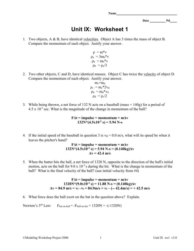 Answer Key Impulse And Momentum Worksheet Answers - Worksheet Life Pertaining To Forces Worksheet 1 Answer Key