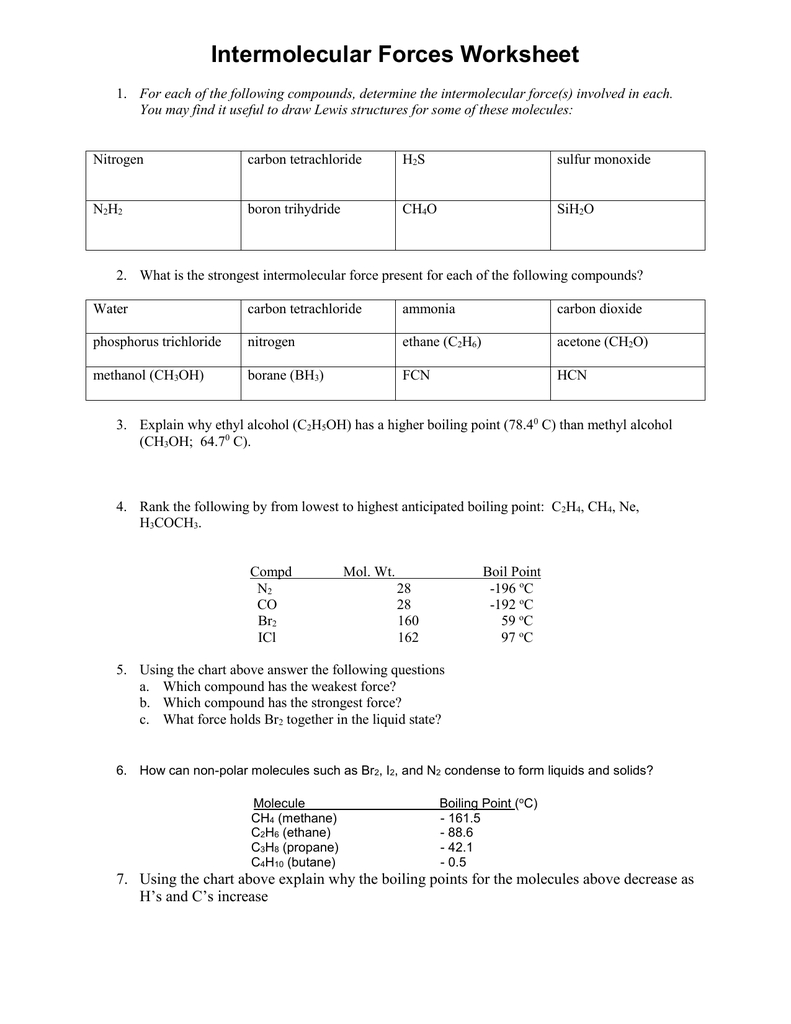 Intermolecular Forces Practice Worksheet Answers - Worksheet Smart Within Forces Worksheet 1 Answer Key