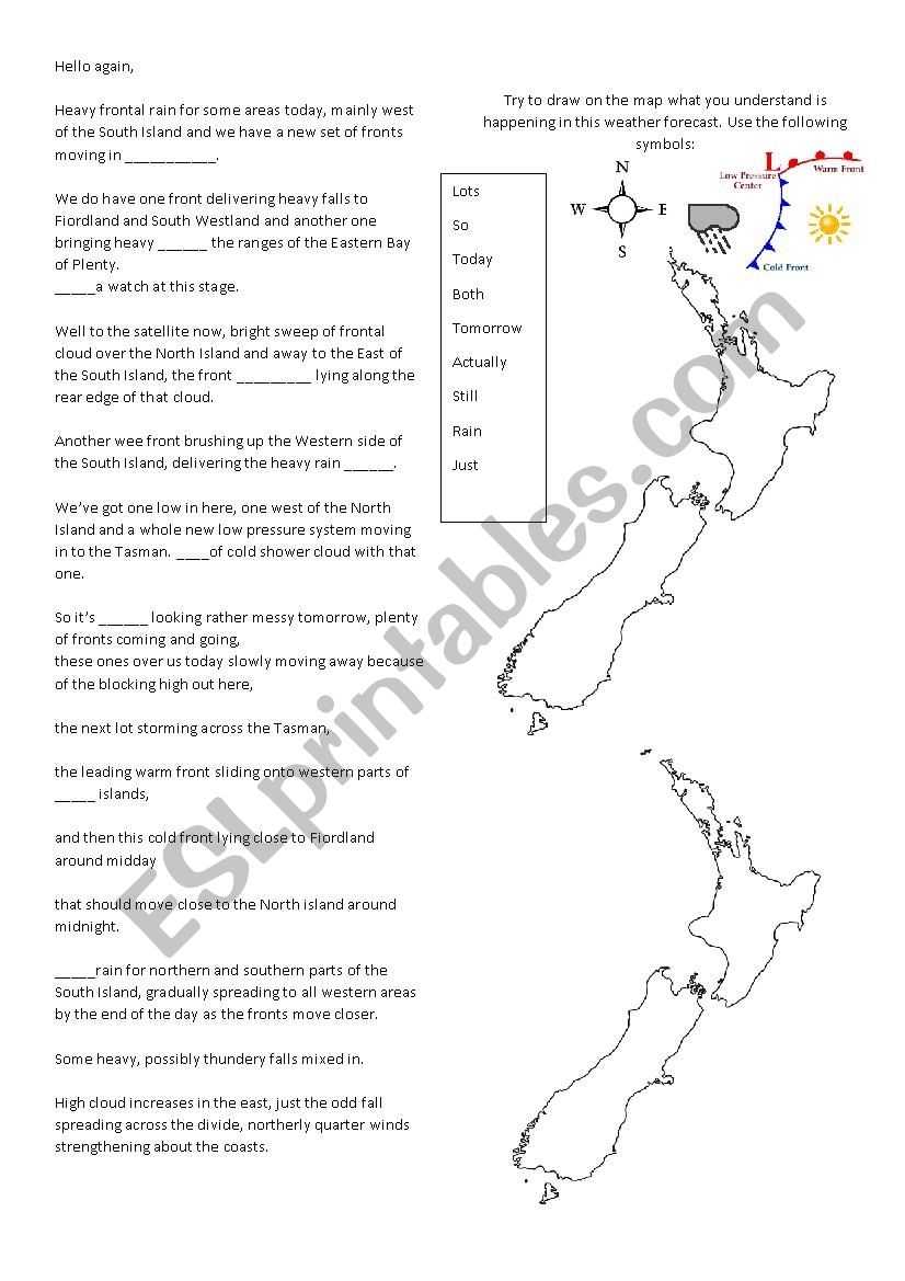 Weather Forecast - New Zealand - Esl Worksheet By Sezfitz For Forecasting Weather Map Worksheet 1