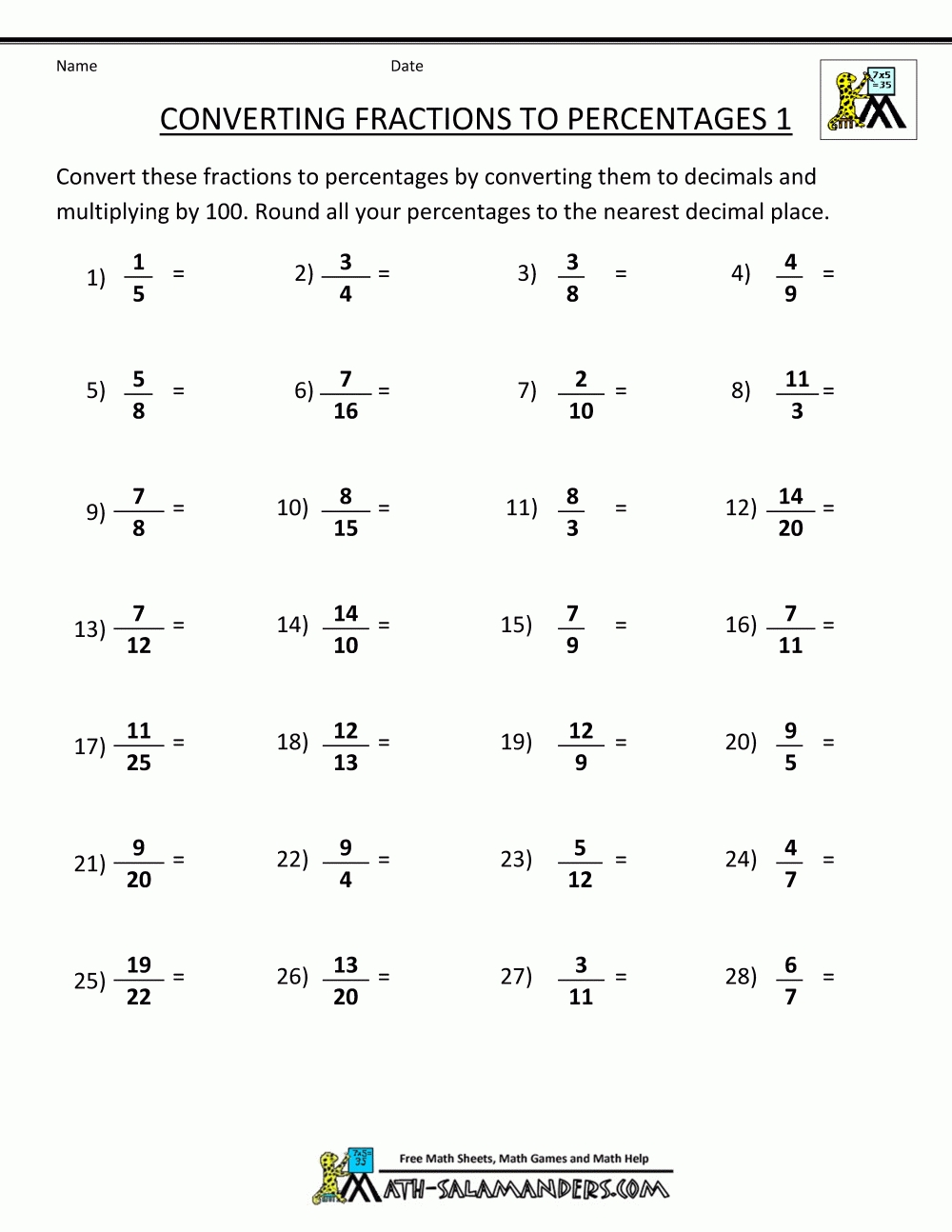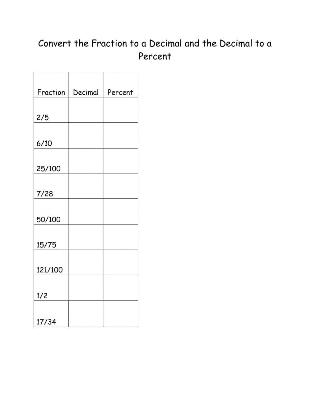 One of the main benefits of using a fraction decimal percent conversion worksheet is that it allows students to practice their skills in an organized and structured manner. This type of worksheet provides users with a systematic approach to converting different forms of numbers. By providing users with a template that is easy to understand and follow, they can practice and perfect their conversion skills with a greater degree of accuracy and precision.